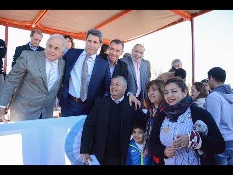 Con la presencia del gobernador de la provincia, Sergio Uñac, acompañado del vicegobernador Marcelo Lima, el ministro de Infraestructura y Servicios Públicos, Julio Ortiz Andino, funcionarios del IPV y el intendente de Rivadavia Fabián Martín, se llevó adelante la entrega del barrio Rivadavia Conjunto 8, donde 105 adjudicatarios recibieron las llaves de sus viviendas.